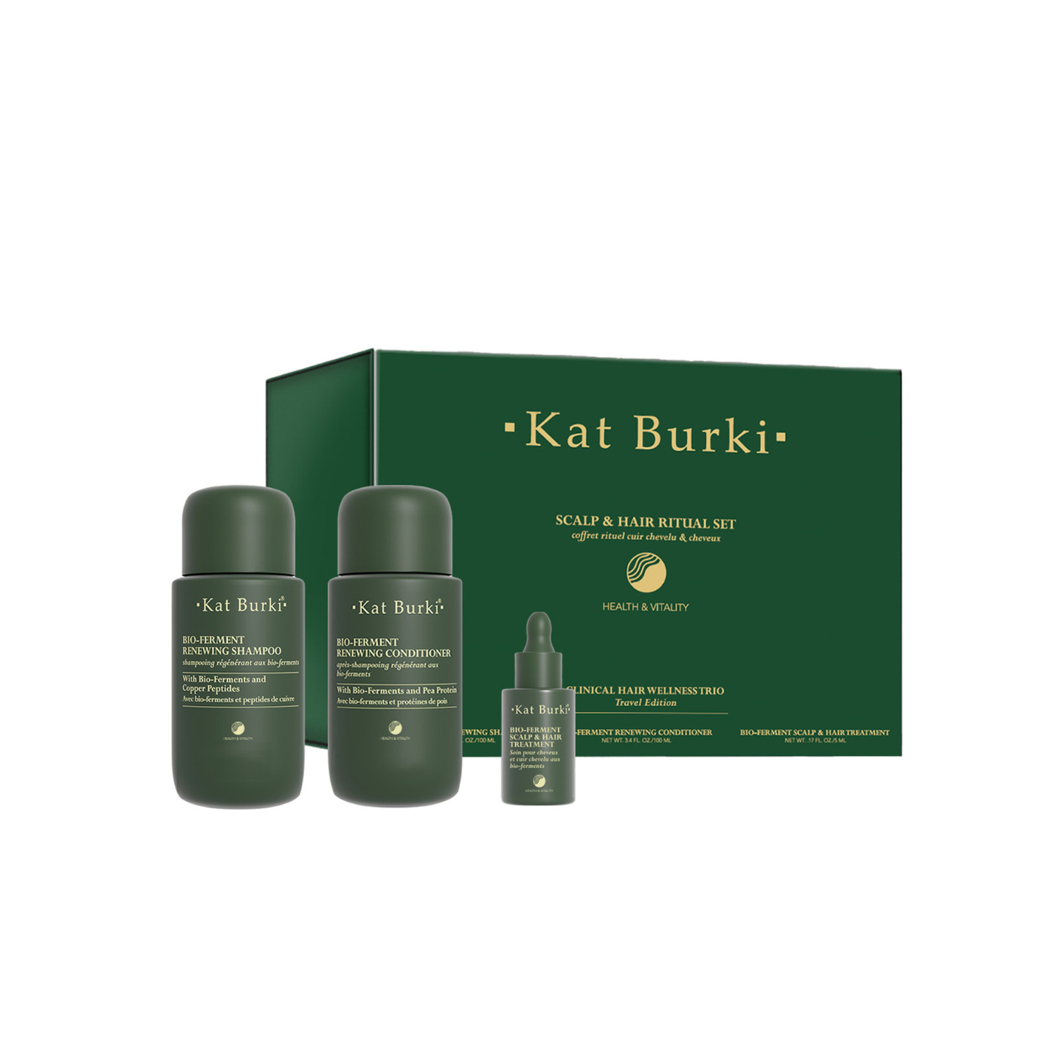 Bio-ferment renewing shampoo: water (aqua), coco-betaine, sodium c14-16 olefin sulfonate, disodium laureth sulfosuccinate, glycerin, disodium lauryl sulfoacetate, hydrolyzed soy protein, saccharomyces/rice ferment filtrate, copper tripeptide-1, larix europaea wood extract, niacinamide (vitamin b3), panthenol (vitamin b5), pyridoxine hci (vitamin b6), biotin (vitamin b7), folic acid (vitamin b9), sodium ascorbyl phosphate (vitamin c), allantoin, alanine, arginine, serine, valine, glycine, isoleucine, threonine, proline, histidine, phenylalanine, macrocystis pyrifera (kelp) extract, tocopheryl acetate (vitamin e), arnica montana flower extract*, calendula officinalis flower extract*, chamomilla recutita (matricaria) flower extract*, centella asiatica (gotu kola) extract*, lavandula angustifolia (lavender) flower extract*, olea europaea (olive) leaf extract, camellia oleifera leaf extract, sodium pyrrolidone carboxylic (pca), sodium lactate, sodium starch octenylsuccinate, propanediol, maltodextrin, aspartic acid, pca, calcium pantothenate, xanthan gum, cyamopsis tetragonoloba (guar) gum, pentylene glycol, cyclodextrin, tetrasodium glutamate diacetate, sodium chloride, zinc chloride, silica, guar hydroxypropyltrimonium chloride, fragrance**, citric acid, sodium benzoate, potassium sorbate, hydroxyacetophenone, benzyl alcohol. bio-ferment renewing conditioner: water (aqua), isopentyldiol, cetyl palmitate, saccharomyces/rice ferment filtrate, cetearyl olivate, sorbitan olivate, hydroxypropyl methylcellulose, simmondsia chinensis (jojoba) seed oil, vitis vinifera (grape) seed oil, helianthus annuus (sunflower) seed oil, hydrolyzed pea extract, curcuma longa (turmeric) root extract, macrocystis pyrifera (kelp) extract, niacinamide (vitamin b3), panthenol (vitamin b5), pyridoxine hci (vitamin b6), biotin (vitamin b7), folic acid (vitamin b9), sodium ascorbyl phosphate (vitamin c), arginine, alanine, serine, valine, glycine, threonine, proline, isoleucine, phenylalanine, his |